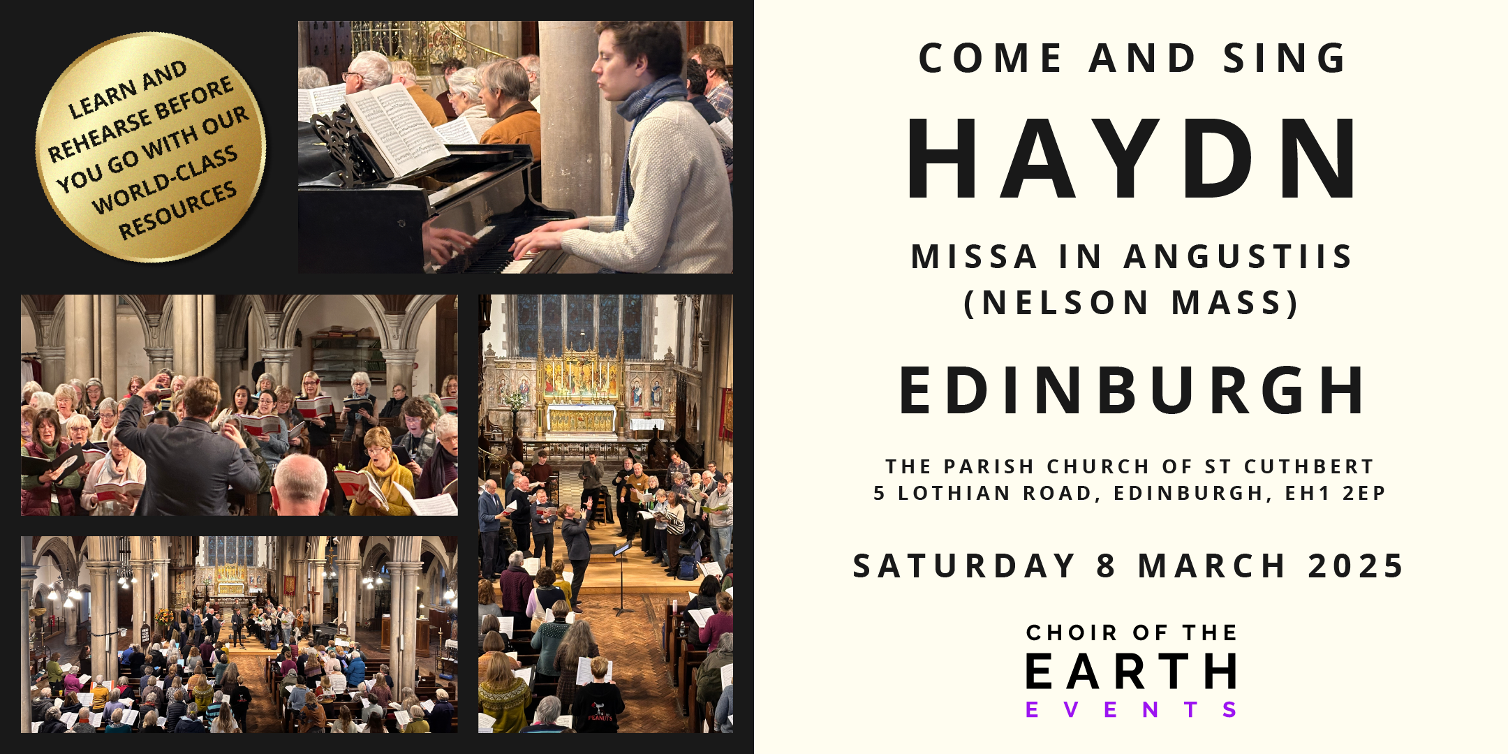 Following our popular come and sing tours for Handel's Messiah and Mozart's Requiem, Choir of the Earth and Labrador Events are delighted to invite you to come and sing Joseph Haydn's glorious "Nelson" Mass with the brilliant Ben England!